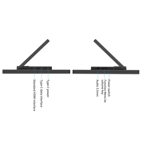 Під’єднання просте: один кабель Type‑C може передавати відео, живлення та дотик (якщо пристрій підтримує повнофункціональний Type‑C). Також можливе підключення через Mini HDMI; для сенсору у цьому випадку використовуйте додатковий USB‑кабель.