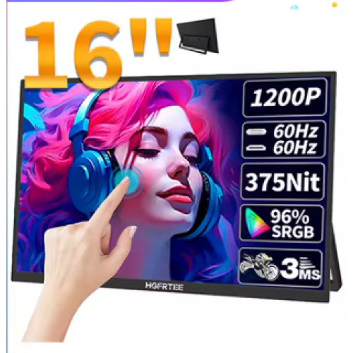 Сенсорний портативний монітор 16″ на базі IPS — компактний другий екран для ноутбука та смартфона. Роздільна здатність 1920×1200 у співвідношенні 16:10 забезпечує більше робочого простору, а 100% DCI‑P3 і HDR дарують насичені кольори та глибокий контраст. Це зручний монітор з Type‑C для роботи, навчання, медіа та презентацій.