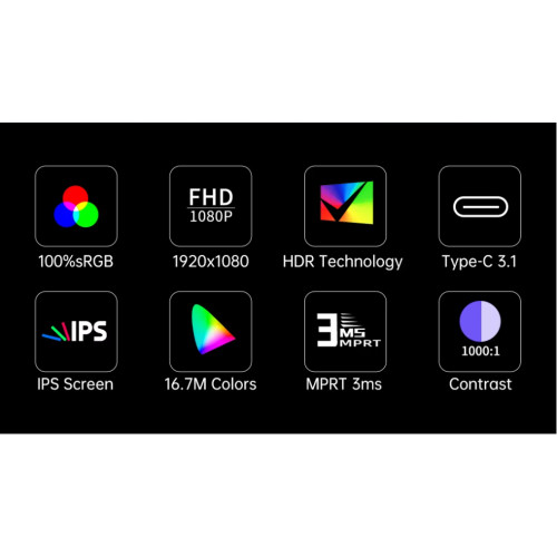 18.5" IPS Монітор 1920×1080 | 100 Гц, HDR, USB-C + HDMI, портативний дисплей для ПК, ігрових приставок, ноутбуків та смартфонів