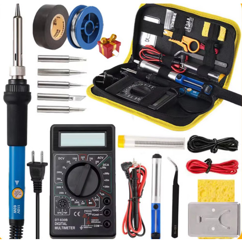 Ключові переваги: набір для пайки 19 в 1, паяльник з регулюванням температури, комплект для пайки електроніки, паяльний набір з мультиметром.