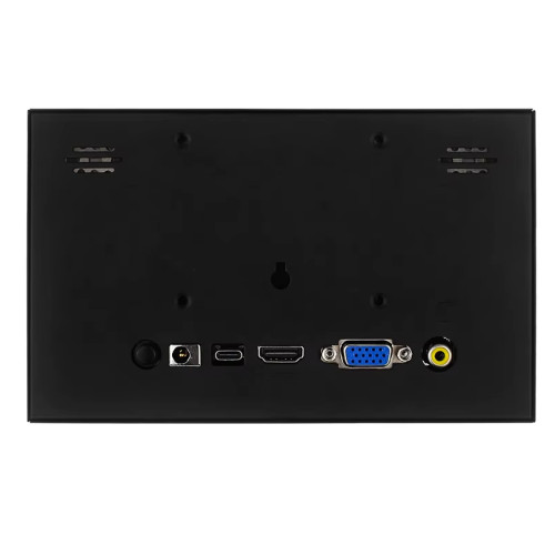 Підключення універсальне: HDMI, VGA та AV, а живлення подається через USB Type‑C або стандартний DC-роз’єм. Це зручно, коли потрібен маленький HDMI монітор для ПК, ноутбука, камер або ТВ-боксу. Вбудований динамік дозволяє дивитися відео та слухати звук без зовнішньої акустики. Передбачено регулювання яскравості, контрасту та формату зображення через меню.