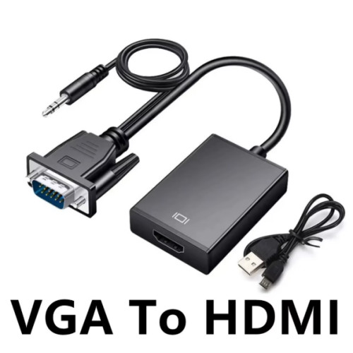 Адаптер-конвертер VGA → HDMI з аудіовиходом та USB живленням перетворює аналоговий відеосигнал і звук 3.5 мм у цифровий HDMI. Це зручний перехідник vga hdmi для підключення старих ПК, ноутбуків чи DVR до сучасних телевізорів, моніторів і проекторів.