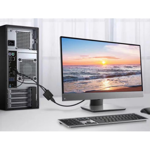 - Порти: вхід VGA та 3.5 мм аудіо; вихід HDMI.