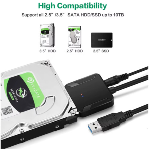 Підключення за принципом Plug and Play: диски можна міняти за секунди, без драйверів. Перехідник sata 2.5 3.5 до usb підходить для створення завантажувального диска, клонування системи та щоденної роботи. Зручно як «sata usb 3.0 для hdd», так і для SSD.