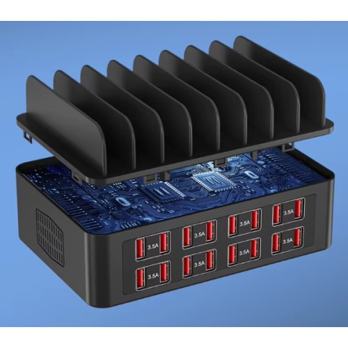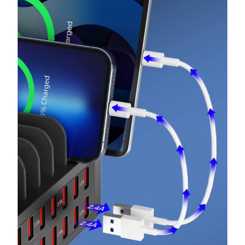 Універсальна USB зарядна станція 150W на 16 портів створена для безпечного та одночасного живлення багатьох гаджетів. Це настільний USB зарядний пристрій з підставкою, що допомагає акуратно розмістити смартфони та планшети під час заряджання.
