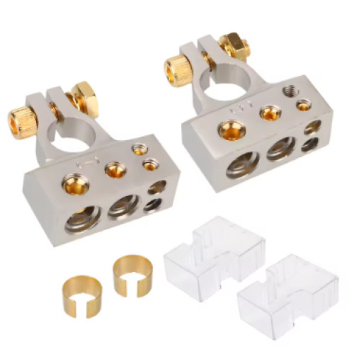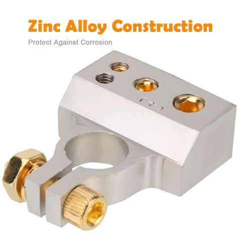 Ці автомобільні клеми — практичний вибір, коли потрібні клеми для акумулятора для різних типів транспорту. Це клеми акумулятора цинкові з нікельованою поверхнею, тож фактично це клеми акумулятора нікельовані зі стійкістю до корозії. Конструкція з виходами 2GA та 8/10GA робить їх зручними як клеми акумулятора 2GA і клеми акумулятора 8GA для підключення додаткових систем, зокрема автозвуку. Підійдуть як клеми для авто акумулятора у 12V системах та як клеми батареї автомобіля для щоденного використання.