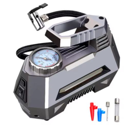 Завдяки міцному пластиковому корпусу та мідному мотору портативний компресор для коліс підходить для щоденного використання. Це зручний компресор з манометром для шин легкових авто, велосипедів і мотоциклів, а також для м’ячів та надувних виробів (з комплектними насадками). Контроль тиску виконується вручну.