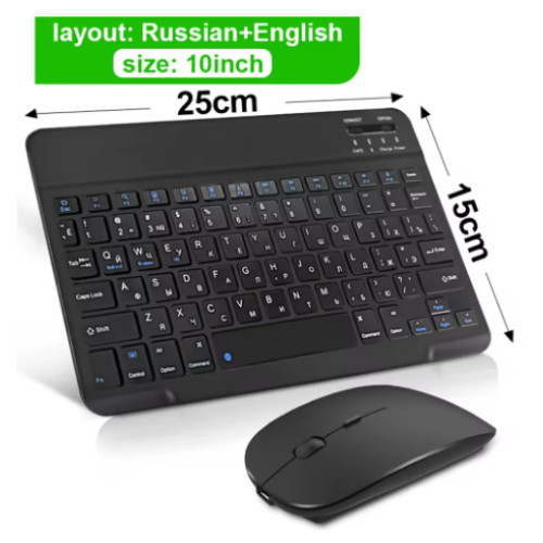 - Підключення: клавіатура — Bluetooth; миша — Bluetooth або 2.4 ГГц USB (бездротова миша 2.4 ГГц).