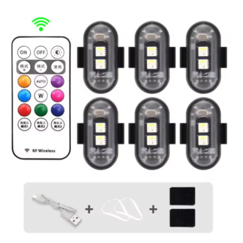 Це бездротові LED стробоскопи з пультом, у комплекті з 6 штук. Компактні, яскраві та помітні вдень і вночі, вони підтримують 8 кольорів світіння та запам’ятовують обраний режим.