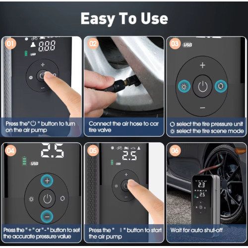 Як насос для шин акумуляторний і компактний компресор для подорожей, модель виручить у відрядженні, на тренуваннях або під час відпочинку. Автомобільний компресор 150 PSI — надійне рішення, коли потрібні мобільність і точність.