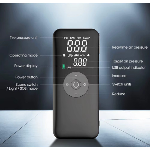 • Працює як компресор для велосипеда та компресор для мотоцикла — зручний у поїздках та тренуваннях.