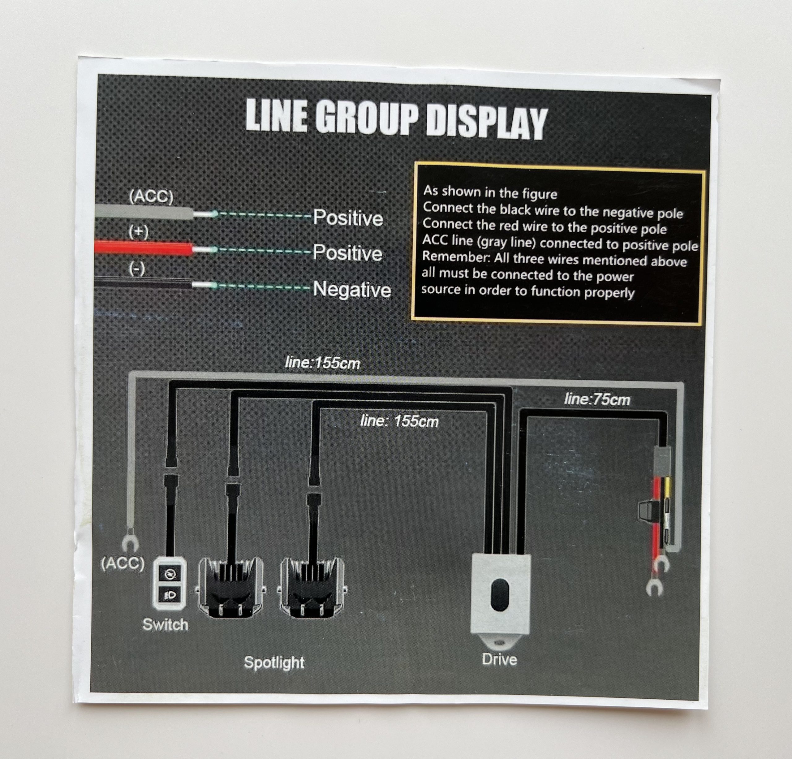 Під’єднайте чорний дріт до мінуса. Червоний – до плюса. Сірий – до плюса для перемикання режимів.