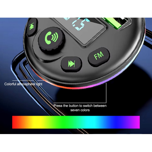 Цей універсальний fm трансмітер для авто працює від бортової мережі 12–24 В, має компактний корпус і м’яке LED-підсвічування. Як автомобільний блютуз передавач і адаптер для гучного зв’язку авто, він підтримує hands-free для автомобіля та відтворює стабільний стереозвук.