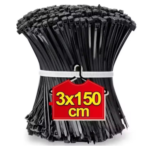 - Розмір однієї стяжки: 3х150 мм; колір — чорний.