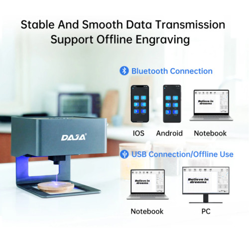 DAJA DJ6 — міні лазерний гравер настільного класу для повсякденних задач. Потужність 3W та робоче поле 80×80 мм дозволяють швидко наносити логотипи, написи й прості зображення на невеликі вироби. Портативний лазерний гравер важить лише 0,96 кг, тому його зручно брати у майстерню чи на виїзні роботи. Це настільний лазерний гравер, що не займає багато місця.