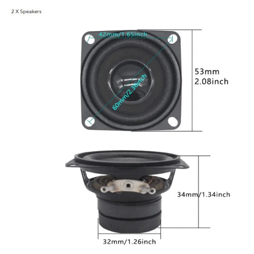 - Комплектація: 2 × динаміки 2″ 10W (4 Ω/8 Ω).
