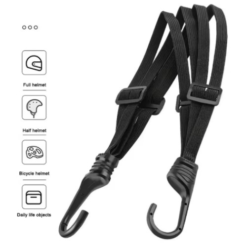 Еластичний ремінь для шолома довжиною 90 см допомагає швидко та безпечно зафіксувати шолом, рюкзак чи інший вантаж на мотоциклі або скутері. Завдяки пружній латексній основі й міцним гачкам це зручний ремінь для кріплення багажу, який надійно працює як фіксатор вантажу на мотоцикл в щоденних поїздках і подорожах.