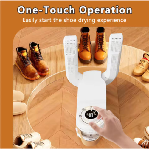 Антибактеріальна електросушарка для взуття з таймером – надійний спосіб швидко висушити пару після дощу, спорту чи прання. Це електрична сушарка для взуття від мережі, що рівномірно подає тепле повітря та допомагає позбутися вологи, запахів і бактерій, зберігаючи матеріали в безпеці.
