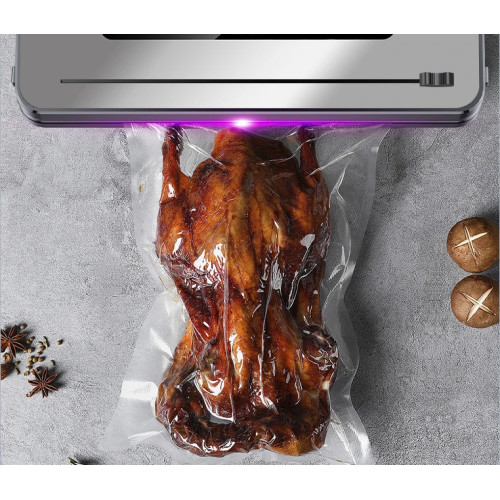 Домашній вакуумний пакувальник стане у пригоді для м'яса, сирів, овочів, ягід і сипучих — зручно готувати заздалегідь, економити місце в холодильнику та уникати змішування запахів. Вакуумний запаювач пакетів також корисний для підготовки продуктів до заморозки та маринування.