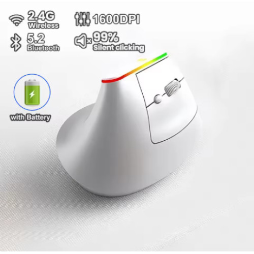 Ергономічна вертикальна миша RGB, Bluetooth 5.2 + 2.4G, безшумна, 6 кнопок, біла, вбудований акумулятор 600 мА·г