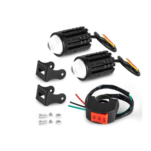 2 × LED фари, 2 × кріплення з регулюванням, 1 × вимикач із кабелем, інструкція (може бути англійською). Монтаж простий, все необхідне вже в комплекті.