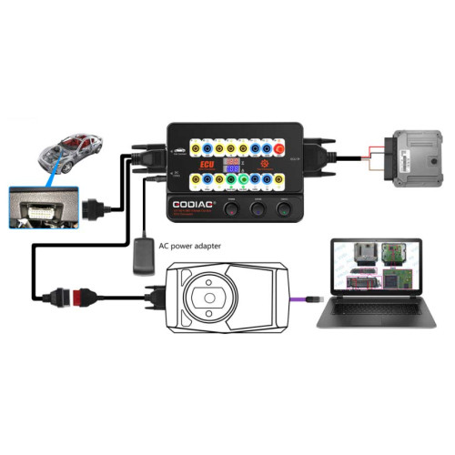 - Діагностика без авто та bench тест ECU/TCU з подачею живлення і керуванням лініями запалення.
