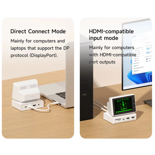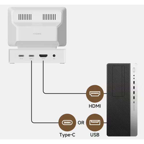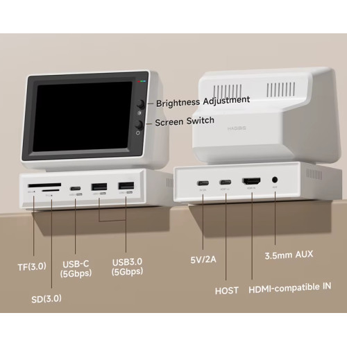Hagibis Mini Dock — мініатюрна док-станція з IPS мініекраном 3.5 дюйма, що поєднує розширення інтерфейсів і відображення корисного контенту в одному корпусі. Це док-станція з екраном, розрахована на сучасні ноутбуки з USB‑C (USB 3.1 Gen2) і підтримкою DisplayPort або інтерфейси Thunderbolt 3/4 та USB4.
