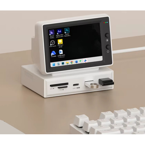 Пристрій зручний як універсальна док-станція для ноутбука у мінімалістичному сетапі: компактна док-станція не займає місця, а вбудований дисплей допомагає тримати перед очима ключові показники. Це док-станція з IPS дисплеєм формату міні док 3.5 дюйма, тож її легко інтегрувати у будь-який робочий простір.