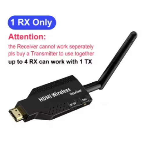 HDMI бездротовий приймач (RX) VIKEFON — компактний бездротовий hdmi приймач для приймання відео та аудіо без дротів і без підключення до Wi‑Fi. Пристрій працює тільки у зв'язці з передавачем TX, тож ідеально підходить як hdmi приймач для проектора, телевізора чи монітора в офісі та вдома. Це зручний бездротовий hdmi адаптер для презентацій, навчання, ігор та домашнього кінотеатру.