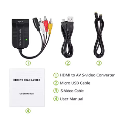 HDMI в AV/S-Video адаптер — універсальний конвертер для підключення сучасних HDMI‑пристроїв до старого AV‑обладнання. Пристрій перетворює цифровий HDMI у композитний відеосигнал (CVBS) або S‑Video та передає стерео аудіо L/R. Це зручний спосіб підключити HDMI до старого телевізора, зберігши сумісність з ТБ, відеомагнітофонами та DVD‑рекордерами.