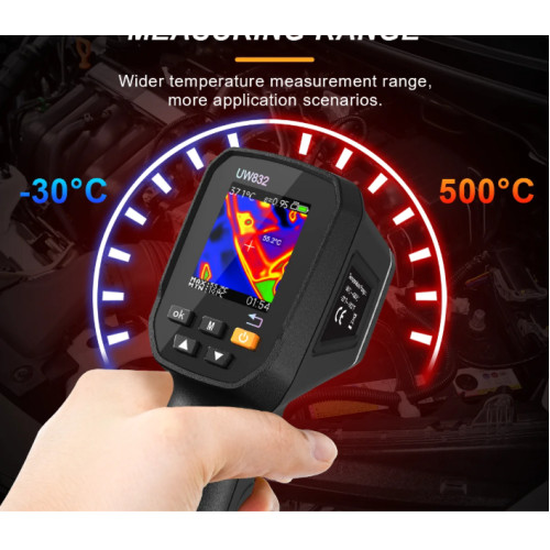 UWEI UW832 — портативний тепловізор базового рівня, що поєднує інфрачервону тепловізійну камеру 32×32 та вбудований кольоровий дисплей 1.77”. Прилад створено для швидкої діагностики в побуті й на роботі: пошуку тепловтрат, перевірки опалення, електроприладів та протікань у теплих підлогах. Якщо вам потрібен компактний тепловізор для дому та інфрачервона камера для діагностики без зайвих налаштувань — це зручне рішення.