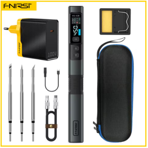FNIRSI HS-02B-TOP Set — інтелектуальний паяльник для електроніки з потужністю до 100 Вт. Портативний паяльник для ремонту поєднує швидкий розігрів, паяльник з дисплеєм 0.96" та точне керування.