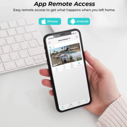 - Автоматичне відстеження людей у кадрі та сповіщення про рух на смартфон.
