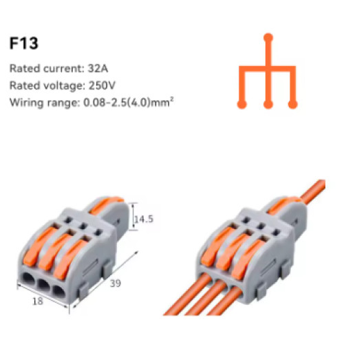 Важільний клемник QHJIA F13 — компактне рішення для швидкого та безпечного з’єднання проводів у побуті й електромонтажі. Як з’єднувач дротів, клемні блоки важільні забезпечують надійну фіксацію, витримують 32A при 250V і не потребують пайки.