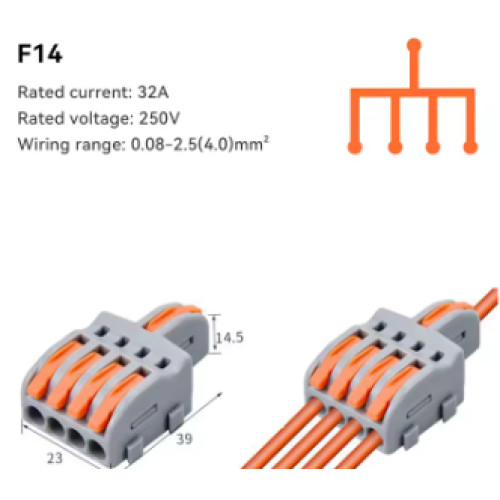 Компактний клемний блок QHJIA F14 — універсальне рішення для швидкого та безпечного підключення проводів без пайки. Це пружинні клеми з вогнетривким корпусом, розраховані на навантаження 32А та напругу 250В, що робить їх зручними для дому та професійного електромонтажу.