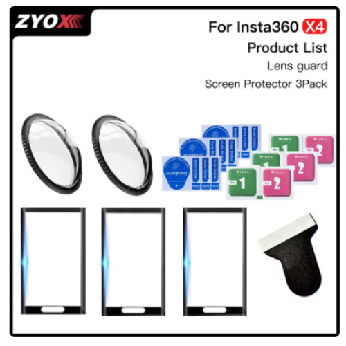 Обираючи цей набір, ви отримуєте прозорий захист лінз і екрана з міцного PC, що поєднує надійність, простоту монтажу та сумісність саме з Insta360 X4.