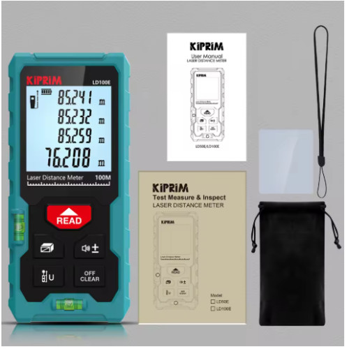 Лазерний далекомір Kiprim 100 м — компактний і точний лазерний вимірювач відстані для будівництва, ремонту та інженерних робіт. Працює як лазерна рулетка 100 метрів, дозволяє швидко отримувати довжину, виконувати вимірювання площі і об’єму та робити непрямі обчислення за теоремою Піфагора. Завдяки підсвічуванню екрану та ергономіці це зручний, професійний лазерний вимірювач для щоденних задач.