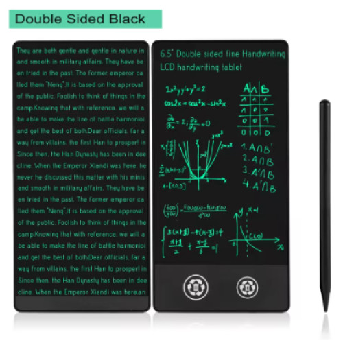 LCD планшет для письма 6.5" Double‑Sided Black — компактний планшет для заміток і малювання з двостороннім дизайном. Це зручний електронний планшет для нотаток удома, у школі та в дорозі, який допомагає замінити папір і зошити.