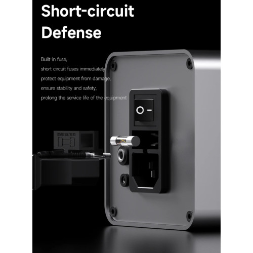 Станція швидко виходить на задану температуру і стабільно її утримує, має зручний цифровий дисплей та інтуїтивне керування. Це паяльна станція з регулюванням температури і режимом сну з налаштуванням часу, перемиканням °C/°F під час увімкнення, а також швидкими профілями P1–P5 для оперативної зміни режимів. Ергономічна ручка та металева підставка забезпечують комфорт і безпеку під час тривалих робіт.