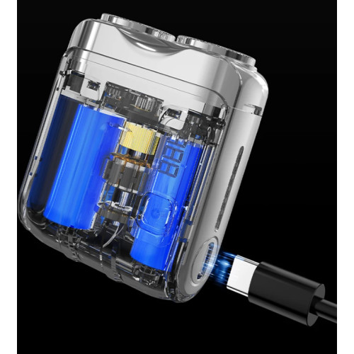 Міні електрична смарт-бритва для чоловіків — це компактне рішення для щоденного догляду та подорожей. Дві незалежні роторні головки з самозаточувальними лезами знімають щетину чисто та м'яко, а LED‑індикатор показує рівень заряду. Завдяки USB Type‑C це зручна бритва usb type-c, яку легко підзарядити від адаптера чи павербанка. Формат "взяв і поїхав" — справжня електробритва для подорожей.