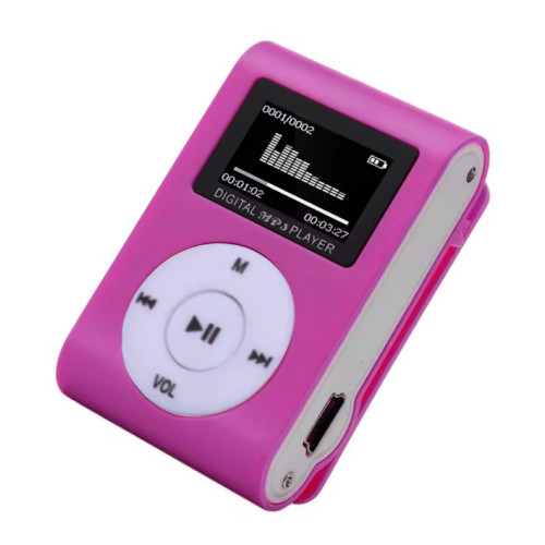 Рожевий міні MP3-плеєр — компактний mp3 плеєр для щоденної музики в дорозі. Це портативний музичний програвач з кліпсою, міні LCD-екраном і зручним зчитувачем карт TF/MicroSD для ваших MP3-треків.