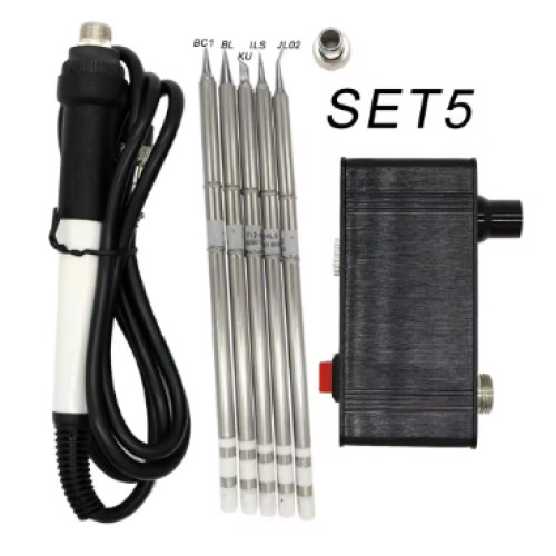 - Підтримка жала T12 (легка заміна, широкий вибір форм для різних завдань; жала T12 набір у комплекті – 5 шт.).