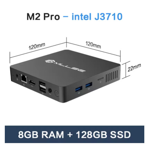 Міні ПК MLLSE M2 Pro 8GB RAM + 128GB SSD з процесором Intel Pentium J3710, Wi‑Fi 5, Bluetooth, HDMI/VGA