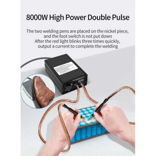 Як ручний споттер для батарей, цей зварювальний апарат для нікелевих смуг допомагає отримати акуратні шви без зайвих зусиль. Якщо вам потрібне точкове зварювання нікелю або зварювання нікелевих стрічок 0.2 мм, апарат забезпечить стабільні результати у домашній майстерні чи під час виїзних робіт.