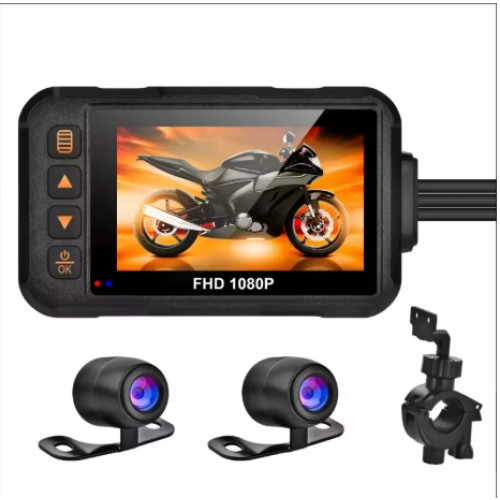 Мотоциклетний відеореєстратор 1080P з передньою та задньою камерою, водозахистом та 3.0" дисплеєм