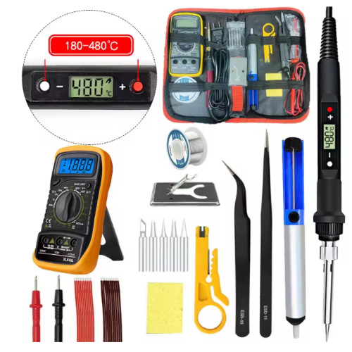 Цей набір для паяння пасує як професіоналам, так і початківцям: точний паяльник 80W з LCD, зручне регулювання 180–480°C і сумісність з наконечниками 900M допоможуть у дрібному ремонті, збірці та роботі з радіоелектронікою.