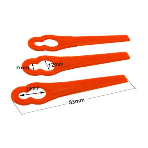 Пластикові ножі для тримера створені зі зносостійкого матеріалу, що витримує щоденне використання та зберігає стабільність різу. Формат ножі для тримера 83 мм підійде для акуратного косіння в саду та біля бордюрів.