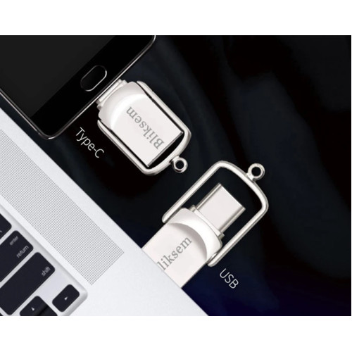 Bliksem 2in1 — компактна металева флешка 2 в 1 з двома роз’ємами: USB 2.0 та Type‑C. Це зручна флешка type-c для швидкої передачі фото, відео й документів між ПК, ноутбуками та смартфонами.