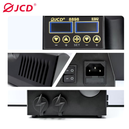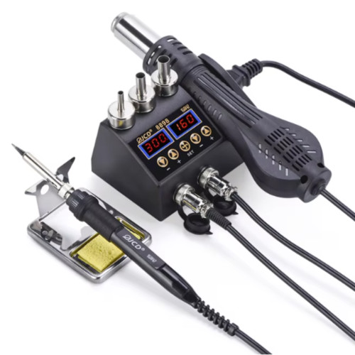 Паяльна станція 2-в-1 750 Вт з LCD‑дисплеєм (модель 8898) поєднує термофен для паяння та класичний паяльник з LCD дисплеєм у компактному корпусі. Завдяки точному контролю температур і зручному відображенню параметрів на двох екранах, станція підходить для роботи з BGA, SMD, PCB та IC у майстерні та вдома.