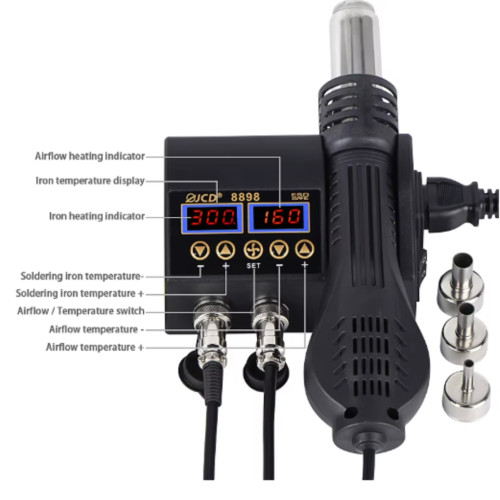 Паяльна станція 2-в-1 750 Вт з LCD-дисплеєм, для BGA, SMD, PCB та IC (модель 8898)